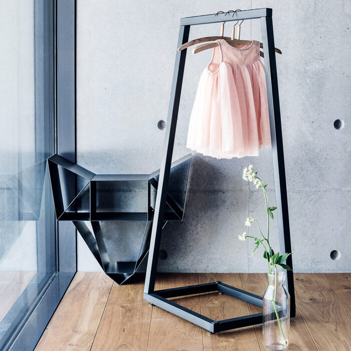 Do you appreciate uncluttered spaces, graceful shapes and “eye-catchers” ? The Lume coat rack in charcoal black steel brings all these characteristics to your interior, whether it is private or public.