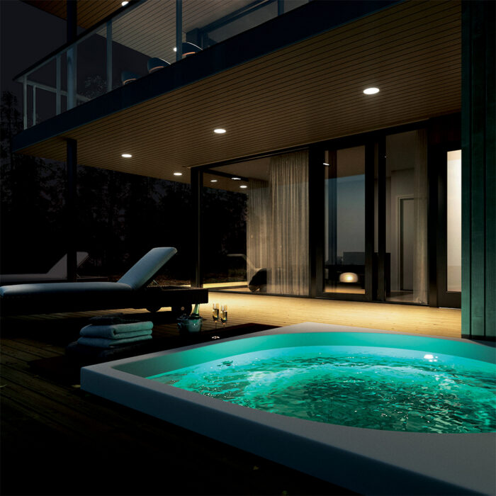 Conçu et fabriqué en Finlande, le jacuzzi est facile à installer et apporte un environnement luxueux directement chez vous. Grâce à ses 32 buses et ses 4 sièges de massage, profitez pleinement d’un moment de détente après une dure journée de travail. La nuit, actionnez les lampes LED pour une ambiance encore plus sensorielle.Son cadre en aluminium et ses courbes épurées contribuent également à l’expérience haut-de-gamme qu’offre ce jacuzzi pour jardin.Vous souhaitez acheter un jacuzzi extérieur ? Nous livrons au Luxembourg, en France, en Allemagne, en Belgique et aux Pays-Bas et procédons à la pose de votre jacuzzi : contactez-nous pour tout devis !